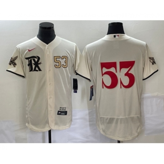>Men's Texas Rangers #53 Adolis Garcia Number Cream 2023 City Connect Flex Base Stitched Jersey