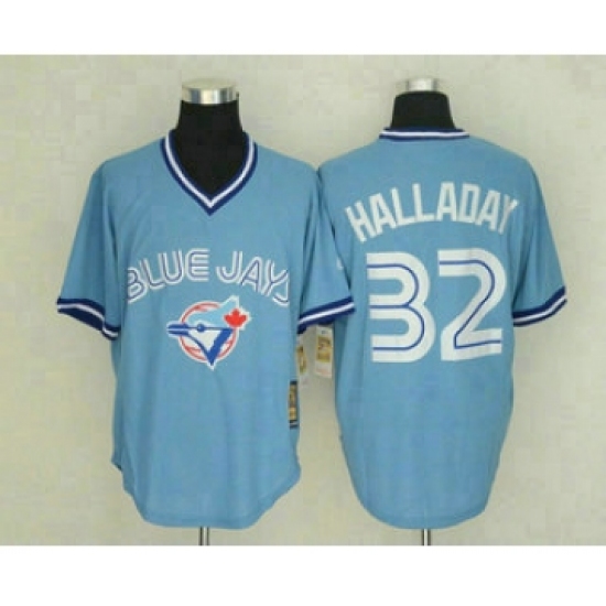 Men's Toronto Blue Jays #32 Roy Halladay Light Blue Pullover Stitched MLB Throwback Jersey By Mitchell & Ness
