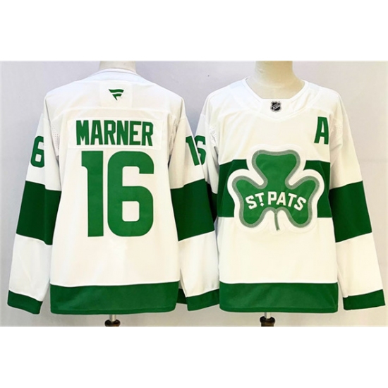 >Men's Toronto Maple Leafs #16 Mitchell Marner White Green 2024-25 With A Stitched Jersey