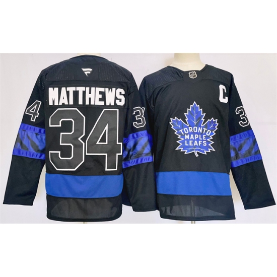 Men's Toronto Maple Leafs #34 Auston Matthews Black 2024-25 Stitched Jersey