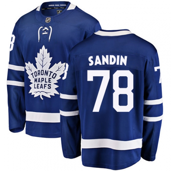 >Men's Toronto Maple Leafs #78 Rasmus Sandin Authentic Royal Blue Home Fanatics Branded Breakaway NHL Jersey