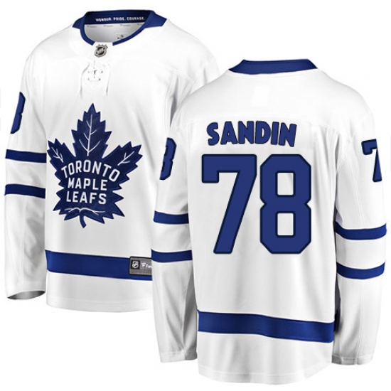 >Men's Toronto Maple Leafs #78 Rasmus Sandin Authentic White Away Fanatics Branded Breakaway NHL Jersey