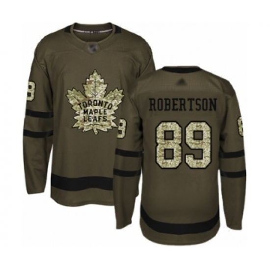 >Men's Toronto Maple Leafs #89 Nicholas Robertson Authentic Green Salute to Service Hockey Jersey