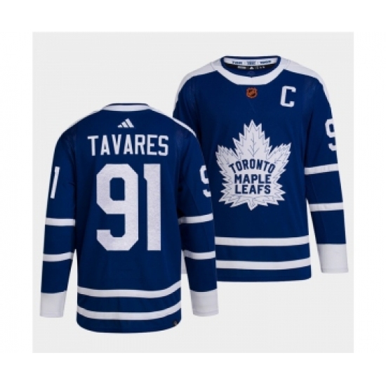 Men's Toronto Maple Leafs Black #91 John Tavares Blue 2022 Reverse Retro Stitched Jersey