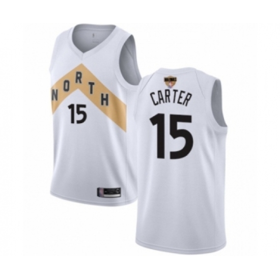 >Men's Toronto Raptors #15 Vince Carter Swingman White 2019 Basketball Finals Bound Jersey - City Edition