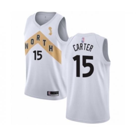 >Men's Toronto Raptors #15 Vince Carter Swingman White 2019 Basketball Finals Champions Jersey - City Edition