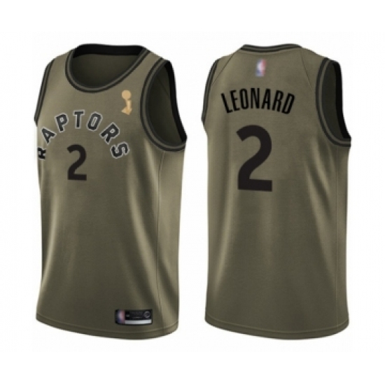 Men's Toronto Raptors #2 Kawhi Leonard Swingman Green Salute to Service 2019 Basketball Finals Champions Jersey