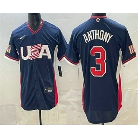Men's USA #3 Roman Anthony Navy 2026 World Baseball Classic Cool Base Jersey