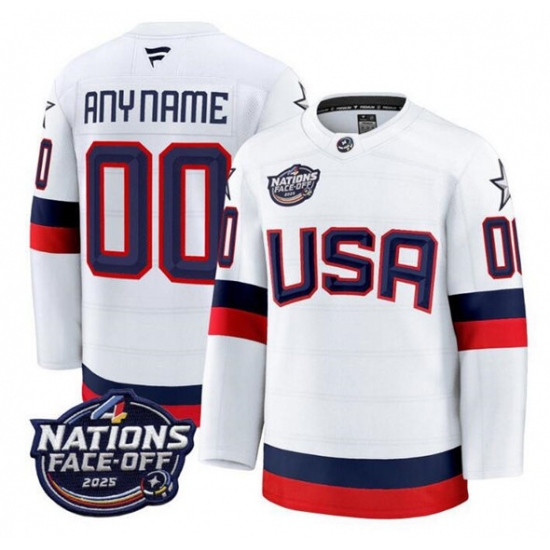 Men's USA Active Player Custom White 2025 4 Nations Face-Off Stitched Jersey