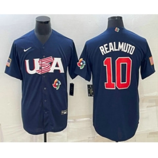 Men's USA Baseball #10 JT Realmuto 2023 Navy World Baseball Classic Stitched Jerseys