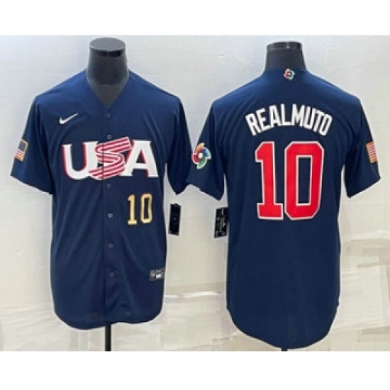 Men's USA Baseball #10 JT Realmuto Number 2023 Navy World Baseball Classic Stitched Jerseys
