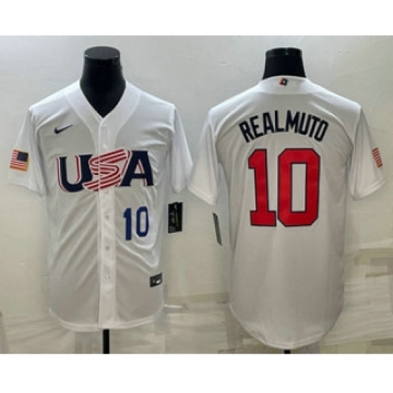 Men's USA Baseball #10 JT Realmuto Number 2023 White World Baseball Classic Stitched Jersey