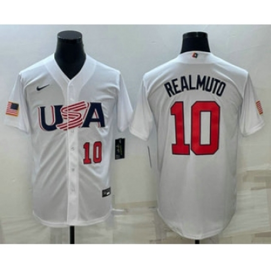 Men's USA Baseball #10 JT Realmuto Number 2023 White World Baseball Classic Stitched Jerseys