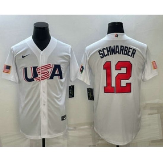 Men's USA Baseball #12 Kyle Schwarber 2023 White World Baseball Classic Stitched Jersey