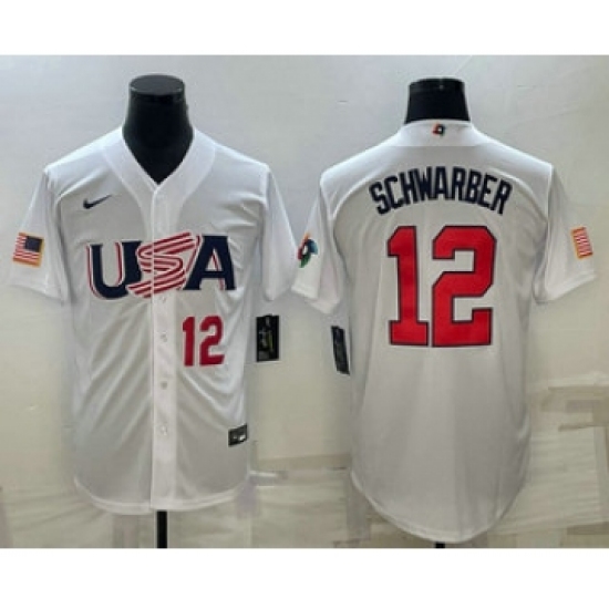 Men's USA Baseball #12 Kyle Schwarber Number 2023 White World Baseball Classic Stitched Jerseys