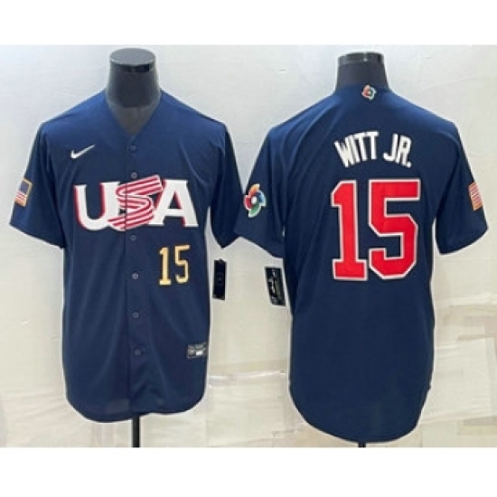 Men's USA Baseball #15 Bobby Witt Jr 2023 Navy World Baseball Classic Stitched Jerseys