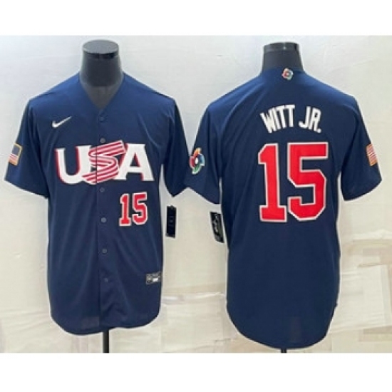 >Men's USA Baseball #15 Bobby Witt Jr Number 2023 Navy World Baseball Classic Stitched