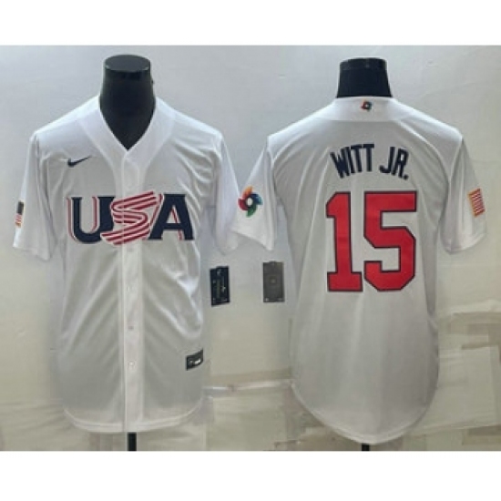 >Men's USA Baseball #15 Bobby Witt Jr Number 2023 White World Baseball Classic Replica Stitched Jersey2
