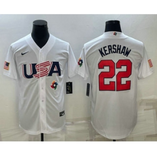 Men's USA Baseball #22 Clayton Kershaw 2023 White World Baseball Classic Stitched Jersey