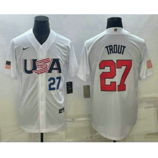 Men's USA Baseball #27 Mike Trout 2023 White World Baseball Classic Replica Stitched Jersey