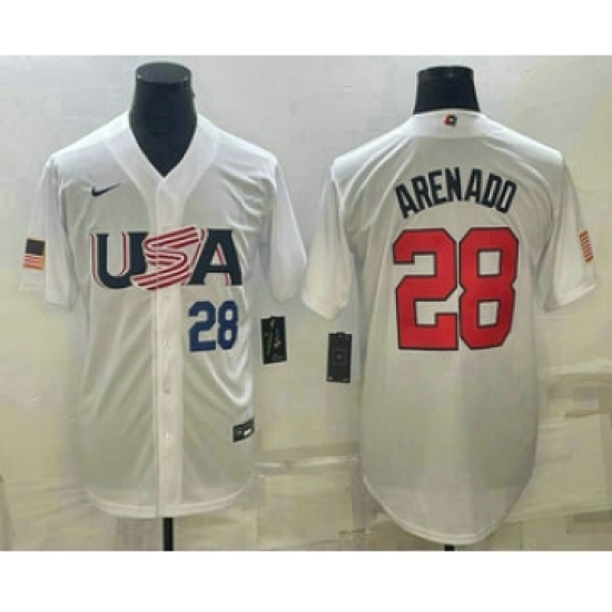 Men's USA Baseball #28 Nolan Arenado Number 2023 White World Baseball Classic Replica Stitched Jerseys