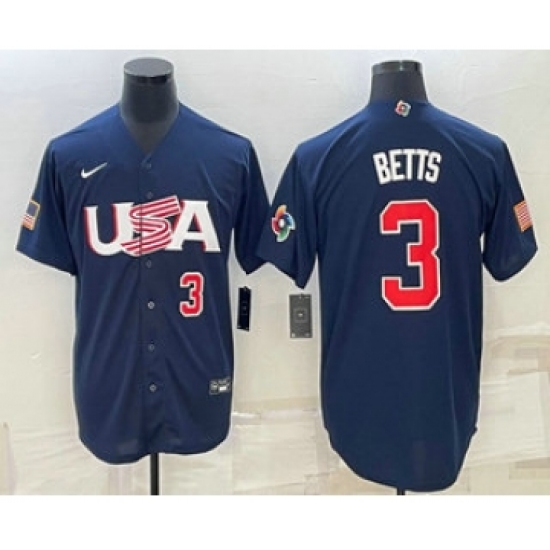 Men's USA Baseball #3 Mookie Betts Number 2023 Navy World Baseball Classic Stitched Jerseys