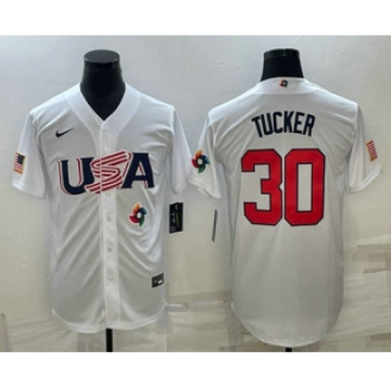 Men's USA Baseball #30 Kyle Tucker 2023 White World Baseball Classic Stitched Jersey