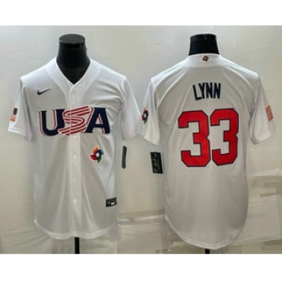 Men's USA Baseball #33 Lance Lynn 2023 White World Baseball Classic Stitched Jerseys