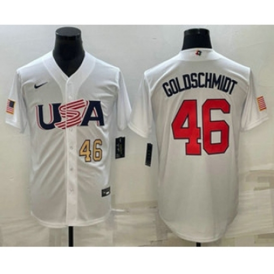 >Men's USA Baseball #46 Paul Goldschmidt Number 2023 White World Baseball Classic Stitched Jersey