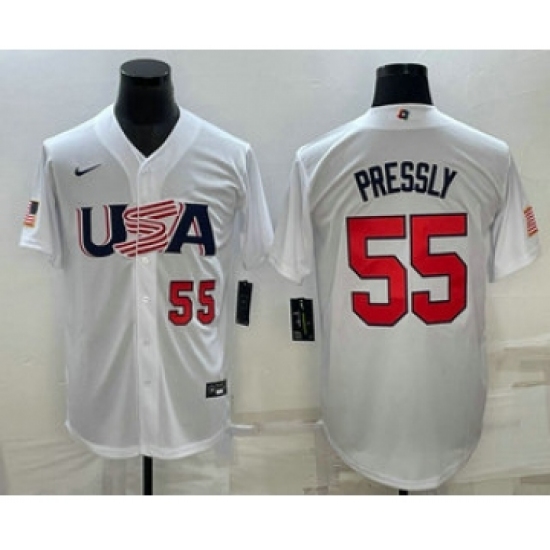 Men's USA Baseball #55 Ryan Pressly 2023 White World Baseball Classic Stitched Jerseys