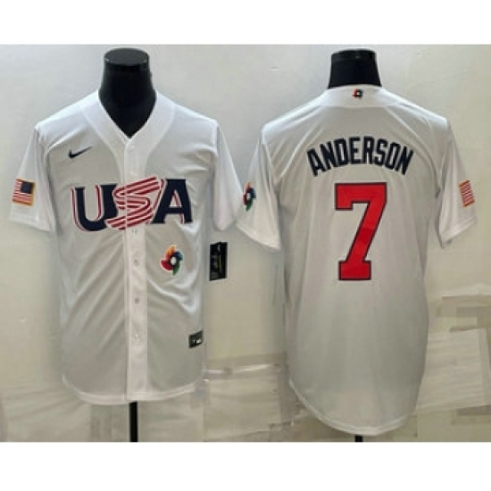 >Men's USA Baseball #7 Tim Anderson 2023 White World Baseball Classic Stitched Jersey