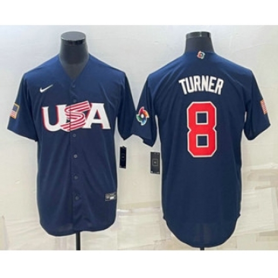 Men's USA Baseball #8 Trea Turner 2023 Navy World Baseball Classic Stitched Jerseys