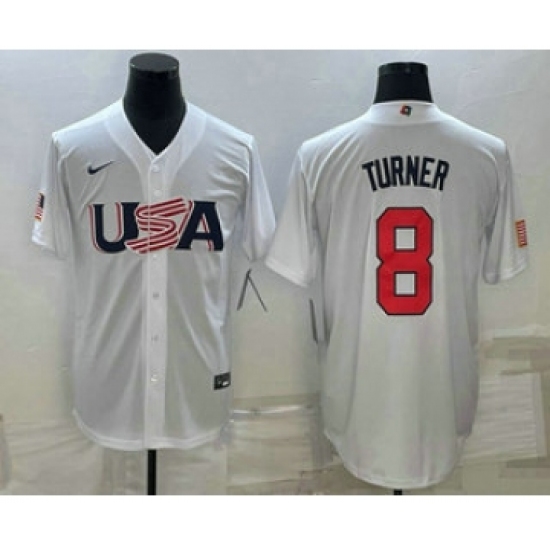 Men's USA Baseball #8 Trea Turner 2023 White World Baseball Classic Stitched Jerseys