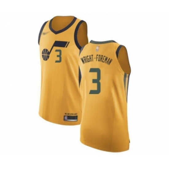 Men's Utah Jazz #3 Justin Wright-Foreman Authentic Gold Basketball Jersey Statement Edition