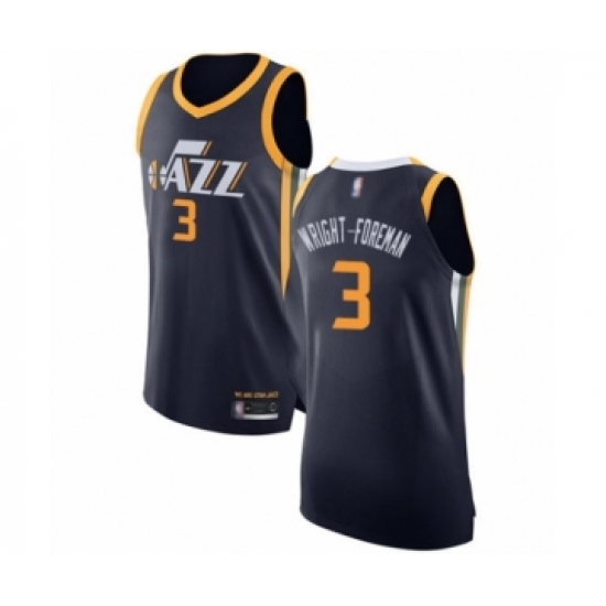 Men's Utah Jazz #3 Justin Wright-Foreman Authentic Navy Blue Basketball Jersey - Icon Edition