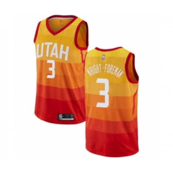 >Men's Utah Jazz #3 Justin Wright-Foreman Authentic Orange Basketball Jersey - City Edition