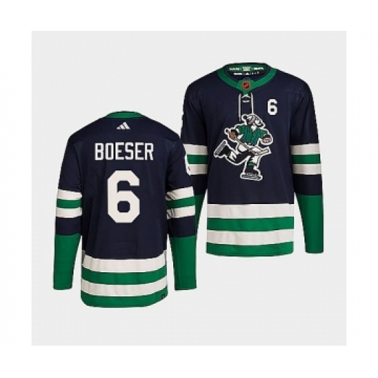 Men's Vancouver Canucks #6 Brock Boeser Navy 2022 Reverse Retro Stitched Jersey