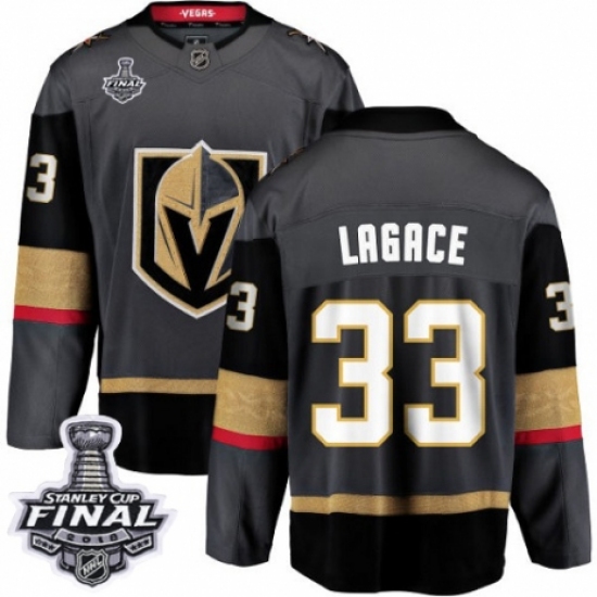 >Men's Vegas Golden Knights #33 Maxime Lagace Authentic Black Home Fanatics Branded Breakaway 2018 Stanley Cup Final NHL Jersey