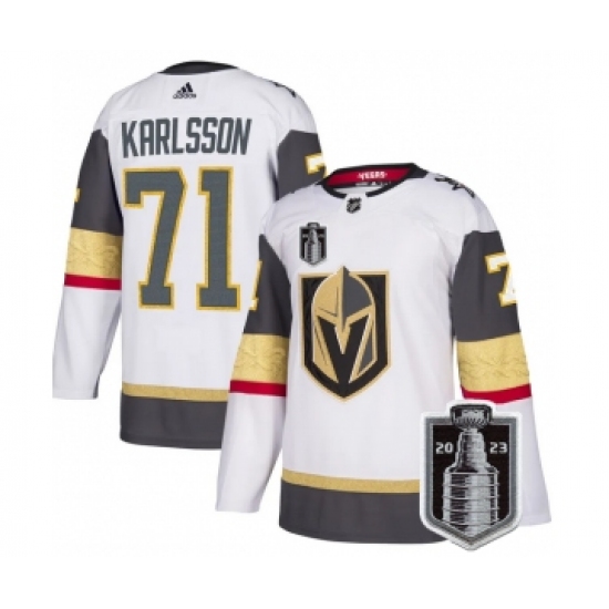 Men's Vegas Golden Knights #71 William Karlsson White 2023 Stanley Cup Final Stitched Jersey