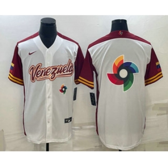 >Men's Venezuela Baseball 2023 White World Big Logo Classic Stitched Jersey