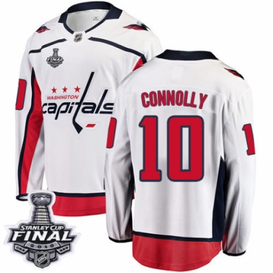 >Men's Washington Capitals #10 Brett Connolly Fanatics Branded White Away Breakaway 2018 Stanley Cup Final NHL Jersey
