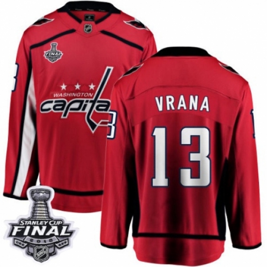 Men's Washington Capitals #13 Jakub Vrana Fanatics Branded Red Home Breakaway 2018 Stanley Cup Final NHL Jersey