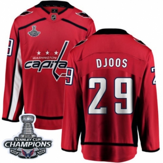 Men's Washington Capitals #29 Christian Djoos Fanatics Branded Red Home Breakaway 2018 Stanley Cup Final Champions NHL Jersey