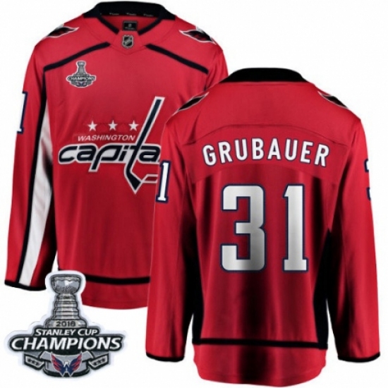 Men's Washington Capitals #31 Philipp Grubauer Fanatics Branded Red Home Breakaway 2018 Stanley Cup Final Champions NHL Jersey