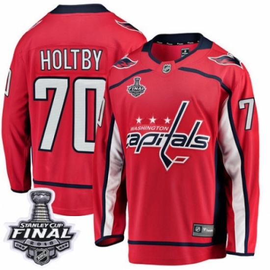 Men's Washington Capitals #70 Braden Holtby Fanatics Branded Red Home Breakaway 2018 Stanley Cup Final NHL Jersey