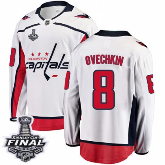 Men's Washington Capitals #8 Alex Ovechkin Fanatics Branded White Away Breakaway 2018 Stanley Cup Final NHL Jersey