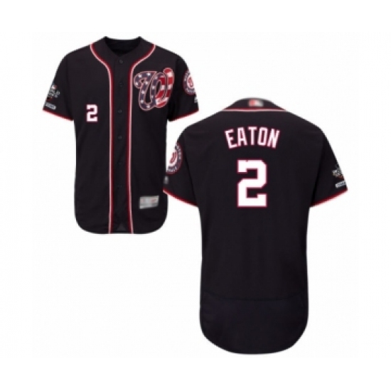 >Men's Washington Nationals #2 Adam Eaton Navy Blue Alternate Flex Base Authentic Collection 2019 World Series Champions Baseball Jersey