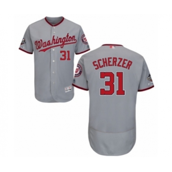 Men's Washington Nationals #31 Max Scherzer Grey Road Flex Base Authentic Collection 2019 World Series Champions Baseball Jersey