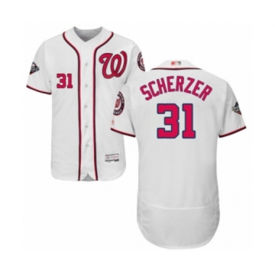 Men's Washington Nationals #31 Max Scherzer White Home Flex Base Authentic Collection 2019 World Series Bound Baseball Jersey