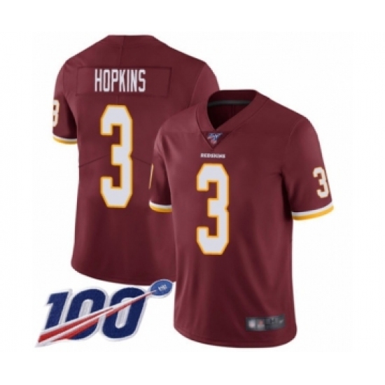 Men's Washington Redskins #3 Dustin Hopkins Burgundy Red Team Color Vapor Untouchable Limited Player 100th Season Football Jersey